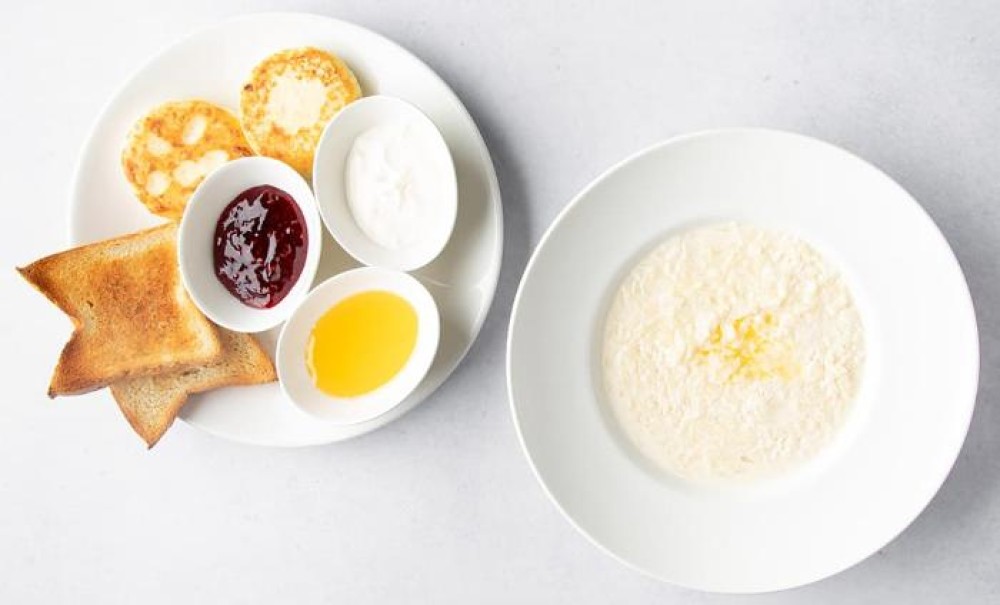 Milk porridge: semolina, oatmeal, rice. Cheesecakes, honey, jam, sour cream, toast bread