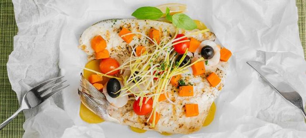 Dorado with vegetables baked in foil