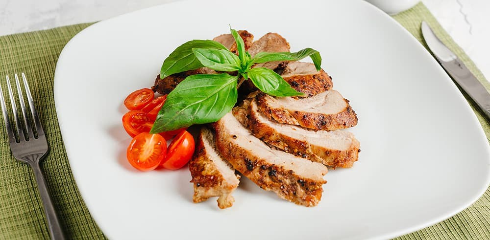 Обжаренное на гриле до румяной корочки, затем запеченное в печи, филе индейки сохраняет мягкость и сочность внутри, а ягодный соус из клюквы и черники, придает блюду кислинку и сладость