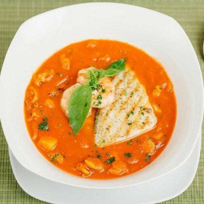 Суп из печеной тыквы с трюфельным маслом и тортеллини и рикоттой